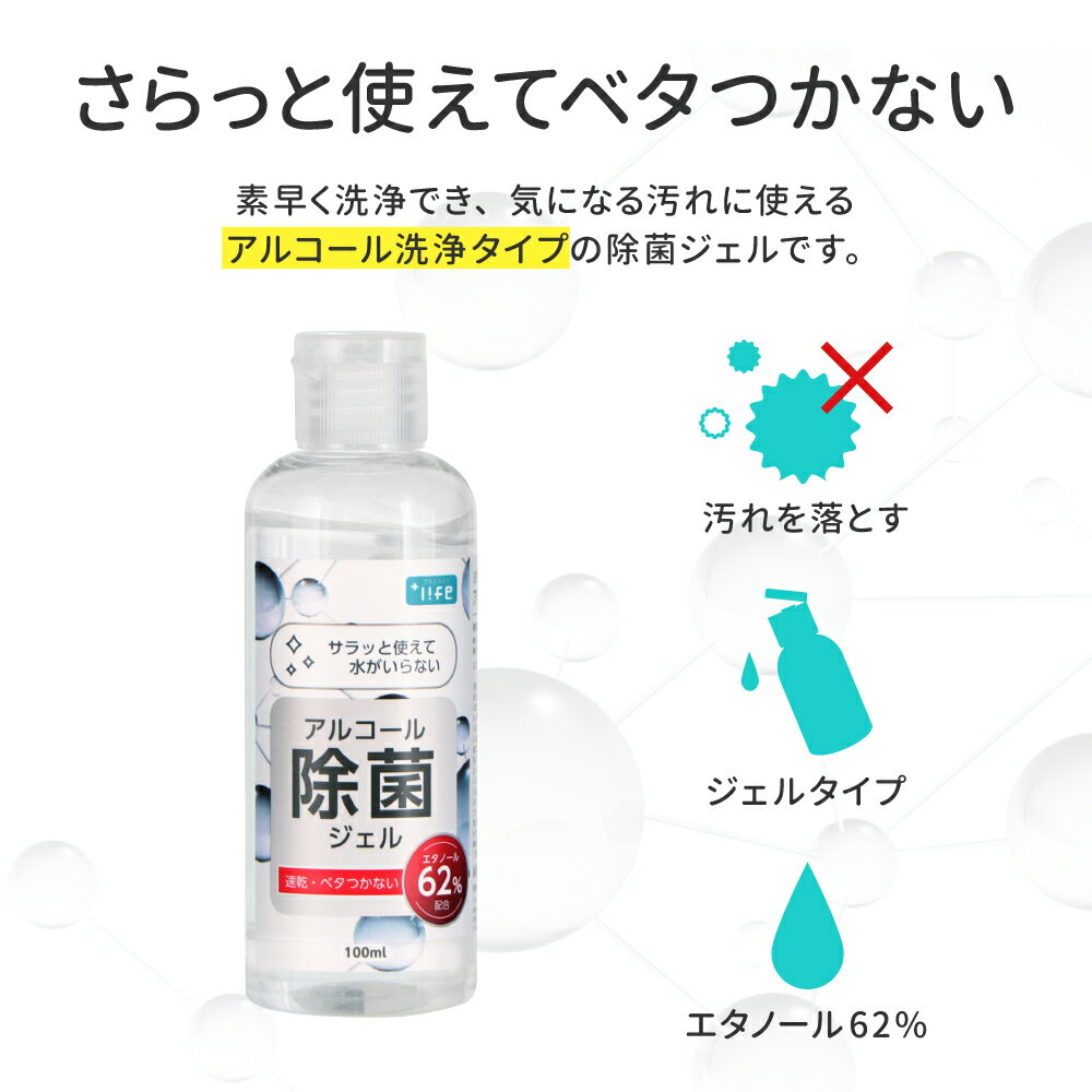 アルコール除菌ジェル 100mL ハンディサイズ エタノール62%配合 +Life プラスライフ