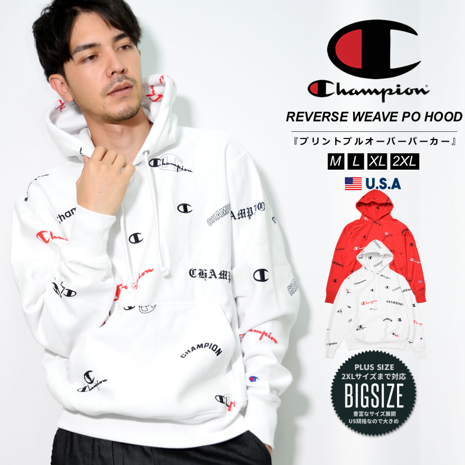 Champion チャンピオン メンズ パーカー 大きいサイズ スウェット スエット ロゴ プルオーバーパーカー 総柄 USA規格 ストリート ファッション スポーツ REVERSE WEAVE PO HOOD S2974586404