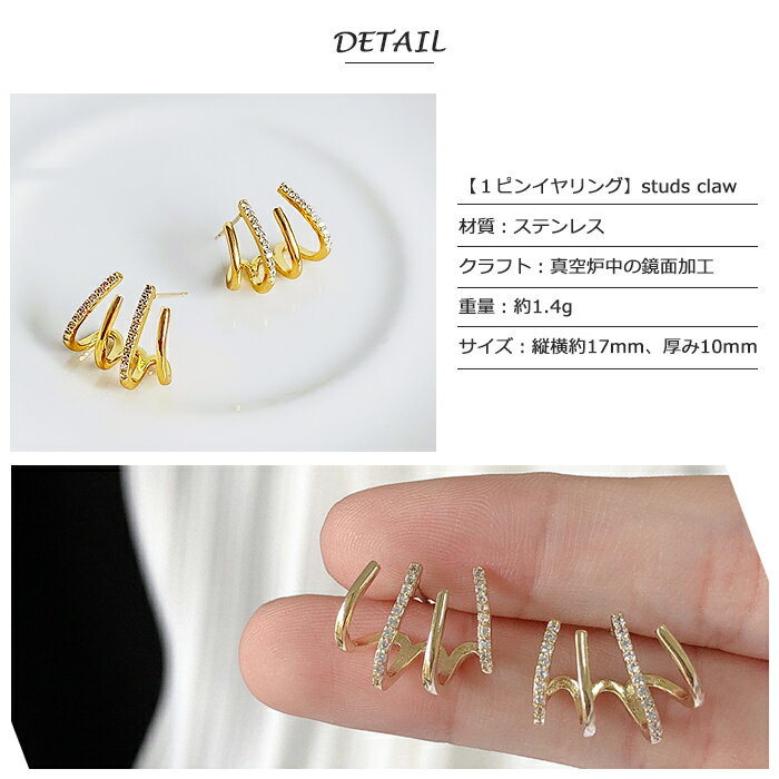送料無料 大人可愛い 両耳2個セット クロウスタンダードピアス ステンレス製 かわいい アクセサリー ゴールド おしゃれ フリー 大人 フォーマル 金属アレルギー対応 18K シンプル ジュエリー トレンド おしゃれ 春夏用