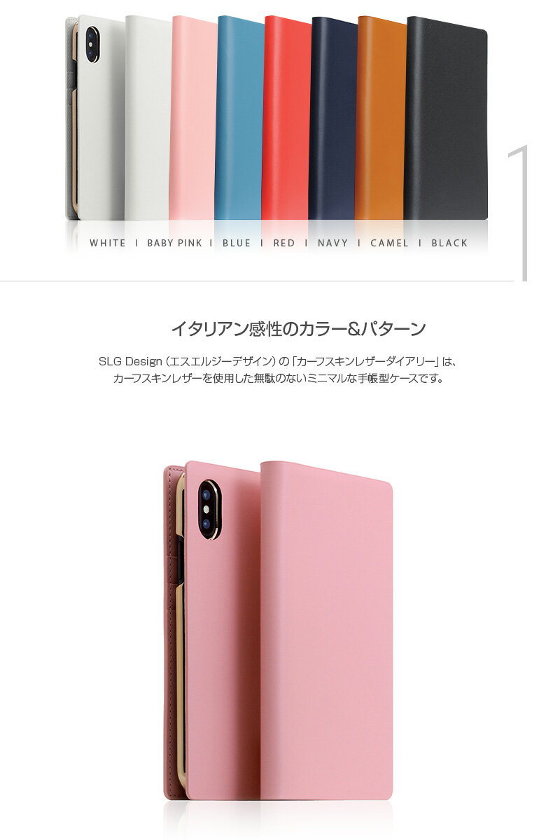 【iPhone XS / X ケース】 手帳型 カバー おしゃれ 本革 SLG LG Design Calf Skin Leather Diary (カーフスキンレザーダイアリー) 【カード収納 / 横開き】 メンズ レディース シンプル マグネットなし ワイヤレス充電対応