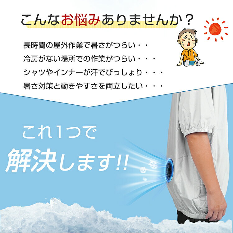 *4/22限定10%OFFcp*【送料無料】空調作業服 熱中症対策 夏用 ファン付き 半袖 半そで フード付き 空調ウェア 作業服 作業着 撥水 風量調節 電動 扇風機 空調 涼しい 空調扇風服 冷却 送風 工事 現場 仕事 アウトドア レディース メンズ 薄型 ワークウェア 通気性 ap151-e