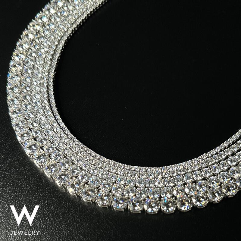 【再入荷】W Jewelry Moissanite "Tennis Chain Necklace" White Gold 4mm ダブル ジュエリー モアサナイト テニス チェーン ネックレス ホワイトゴールド シルバー925 高輝度 ヒップホップ ラッパー ユニセックス 男女兼用 プレゼント 18K コーティング 金属アレルギー対応