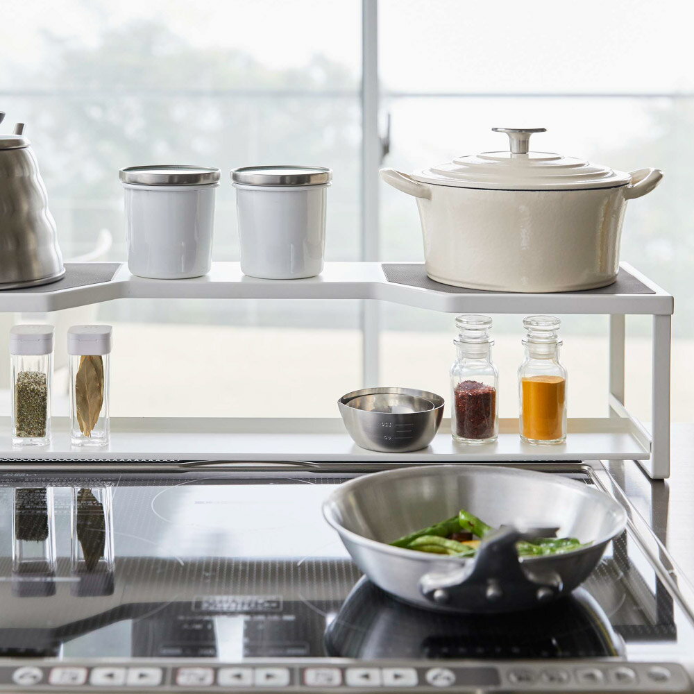コンロ奥ラック プレート 排気口カバー付き 75cmコンロ用 ホワイト 山崎実業 おしゃれ シンプル 高見え 便利 キッチン 収納 排気 油はね 防止 被せ アタッチメント 拡張