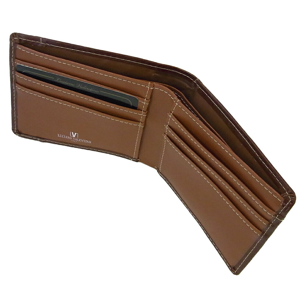 【箱無し】 メンズ 定番 二つ折り財布 本革 牛革 コスパ良 カードスライダー付LUCIANO VALENTINO ルチアーノ バレンチノ 短財布 茶(ライトブラウン) [luv6004lbr]