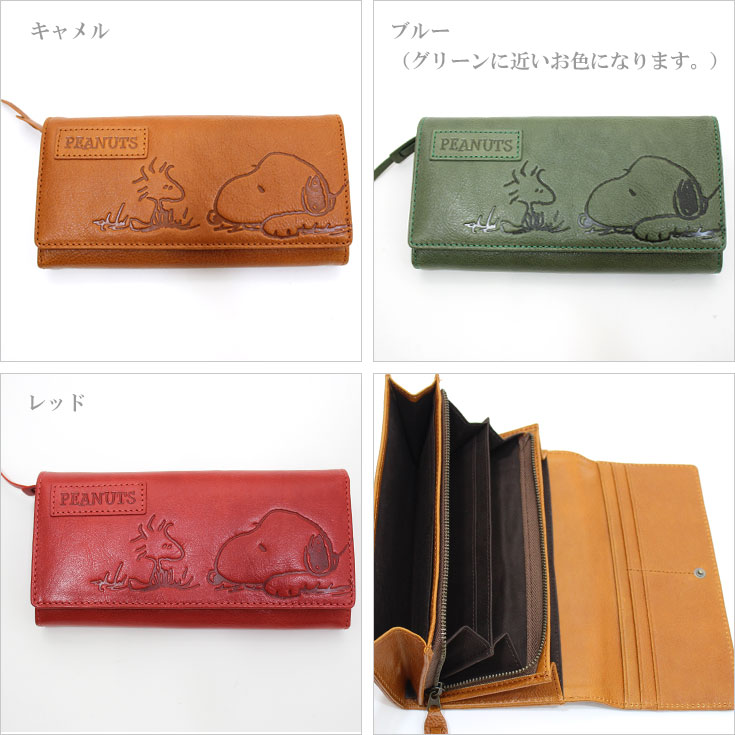\マラソンP2倍+クーポン/ 【送料無料】 PEANUTS スヌーピー 中L束入 長財布 FACEFRIEND 73054 レッド/ライトグリーン/キャメル ウッドストック かぶせ フラップ式ウォレット かわいい
