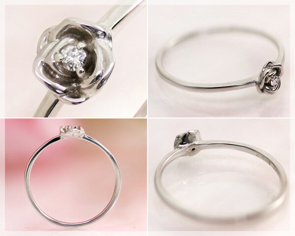 ピンキーリング 4月誕生石 ダイヤモンド 0.01ct ローズ(薔薇) リング(指輪) K10ホワイトゴールド(K10WG) Rose Garden 「ローズガーデン」 国産 日本製/製造オーダー品 約20日間納期