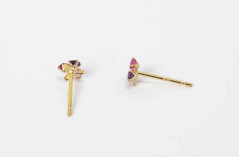 スリーストーン スタッド ピアス 18Kイエローゴールド ルビー ピンクトルマリン アメジスト K18YG 18KYG 18金 小ぶり シンプル 日本製 動画あり [sy]