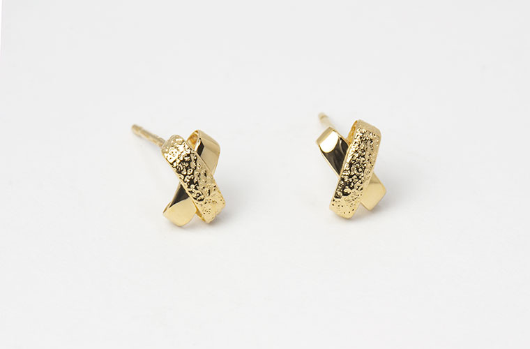 ピアス スタッドピアス 18Kイエローゴールド 地金ピアス シンプル 槌目加工 エックス K18YG 18KYG 18金 日本製 [sy][26-02]