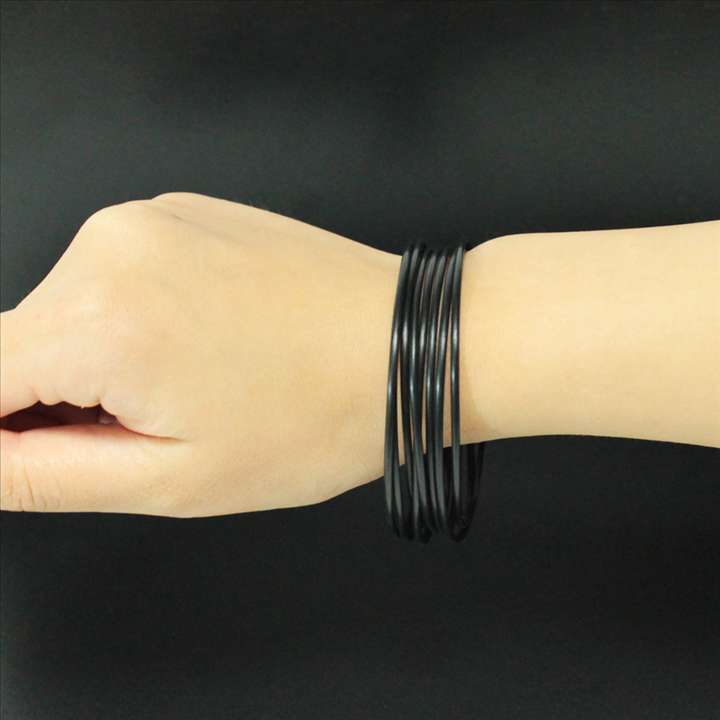 【メーカー直送/営業日に限り13時までの注文で即日発送/直送品以外同梱不可】ロック パンク ゴス シンプル極細ラバーブレス8本セット◎ブラック[4635546]【YK】