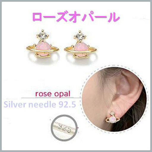 ピアスイヤリングキュービックオパール色UFOシルバーニードルOpalジュエリーピアスジュエリーアクセサリー土星のモチーフゴールドオパールレディスアクセサリー UFO型ピアス