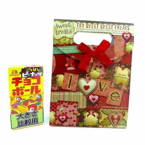 リボン付きマチあり紙袋 B6サイズ LOVE RP-121 簡易ラッピングセット 簡易包装 ギフトバッグ ギフトバック エレガント メール便OK