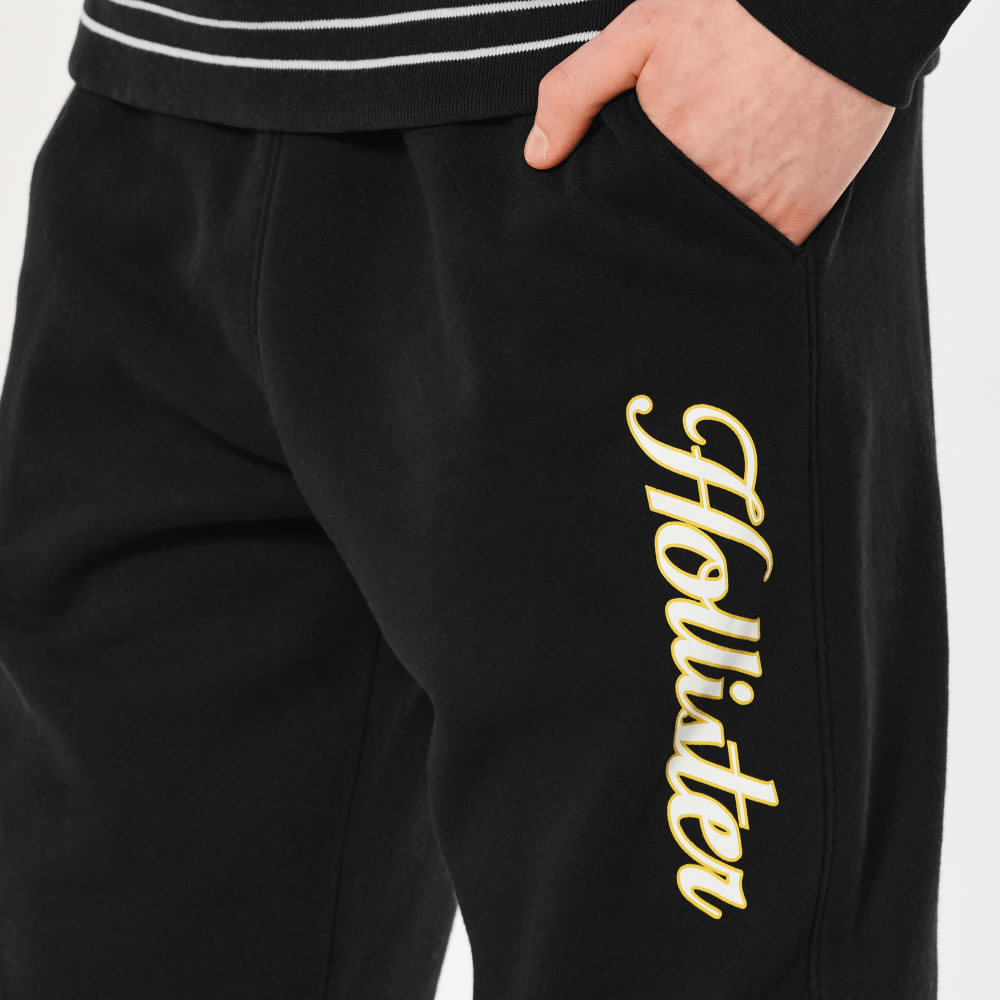 【並行輸入品】ホリスター メンズ スウェットパンツ ( ロングパンツ ) Hollister Relaxed Print Graphic Sweatpants (ブラック) 【スウェットパンツ フリース 】