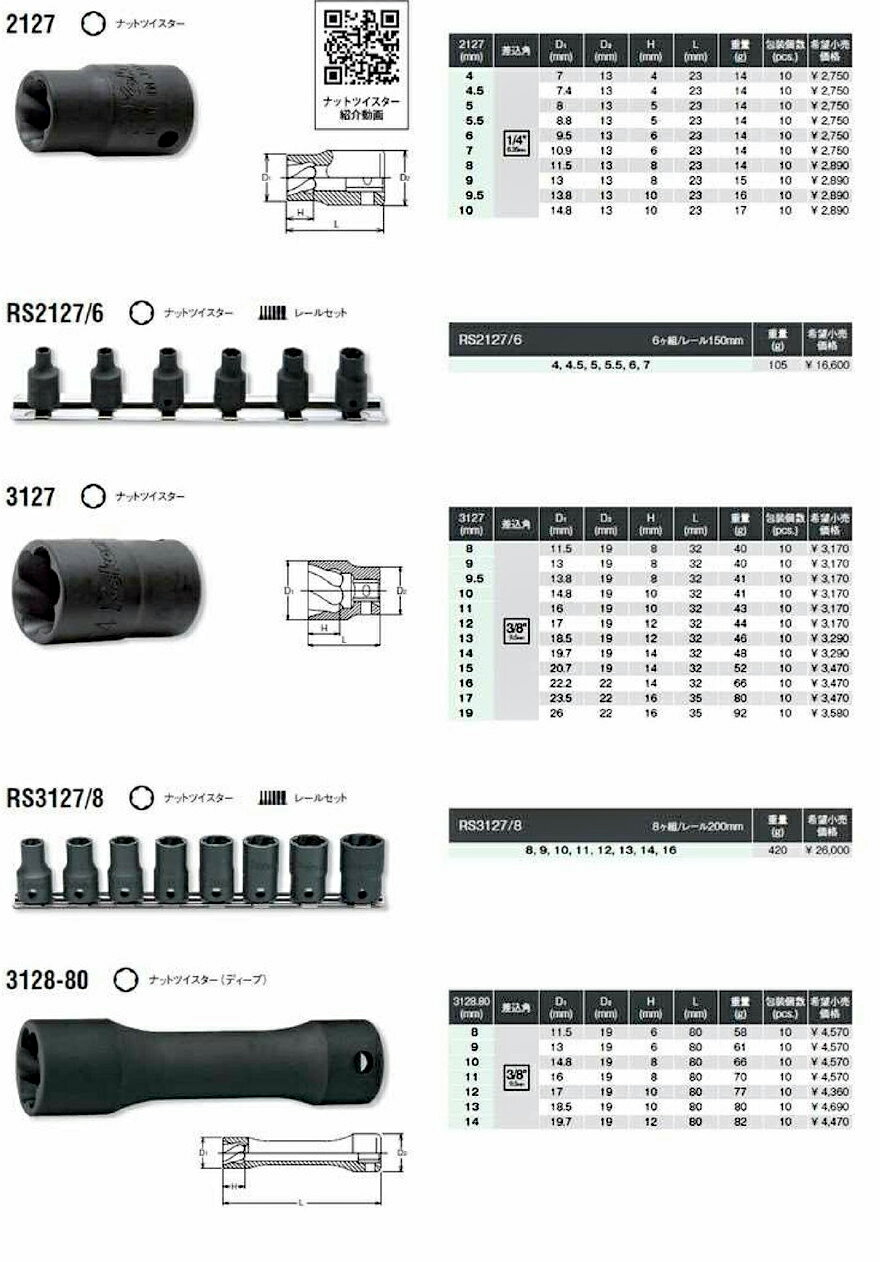 Ko-ken 3127-19 3/8"差込 ナットツイスター 19mm コーケン/山下工研
