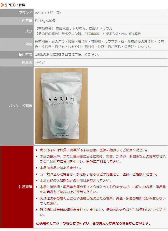 薬用入浴剤 BARTH 中性重炭酸入浴剤 30錠入り 10日用 ドイツ 炭酸湯 入浴料 TWO バース