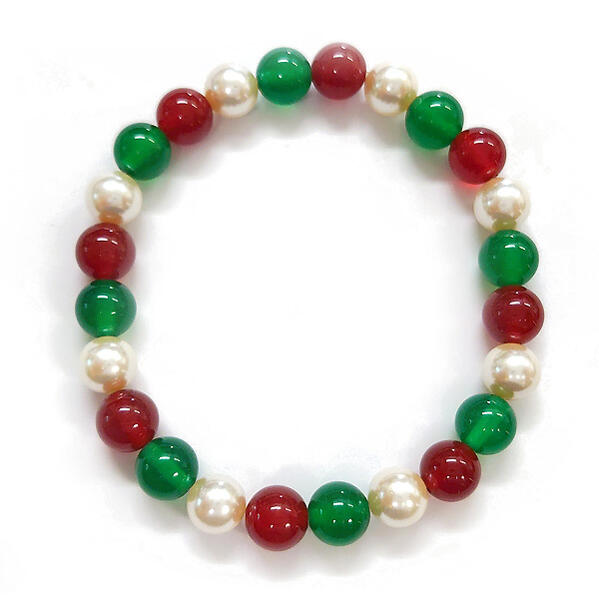 オーナメント カラー ブレスレット 赤めのう & 緑めのう & シェルパール ( 貝パール ) 〜 クリスマス コレクション 〜 贈り物 プレゼント 腕輪