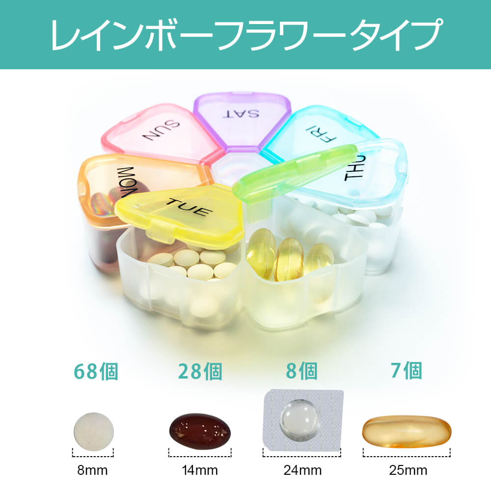 ピルケース 薬ケース レインボーフラワー型 [Santek] 1週間 1日1回 【送料無料】
