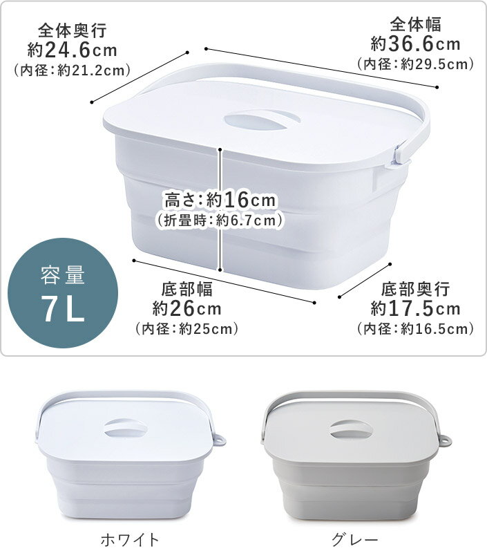 日本製 折りたためる つけ置き洗いバケツ / 7L 折りたたみ 折り畳み つけおき 浸け置き バケツ ソフトタブ 洗い桶 洗濯 運動靴 上靴 上履き 靴洗い 下着洗い 蓋付き ふた フタ 付き 洗濯板 角型 ISETO イセトー