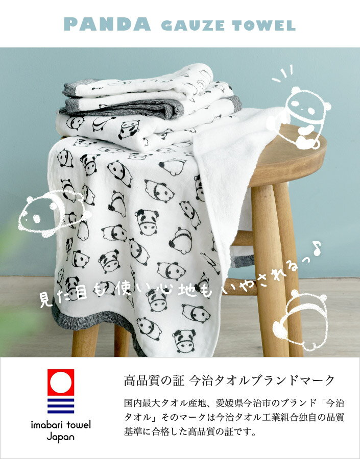 今治タオル 【速乾 薄手】 ガーゼタオル フェイスタオル ぱんだ / 約34×78cm 日本製 今治 タオル 薄手 コンパクト 吸水 速乾 ベビー 子供 保育園 幼稚園 ギフト 1枚