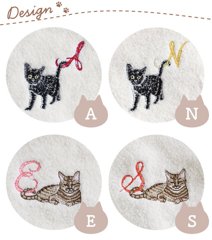 今治タオル ハンカチタオル Komichi Neko 猫 イニシャル / 約25×25cm 日本製 今治 ハンカチ タオル タオルハンカチ 吸水 猫 ネコ 刺繍 猫グッズ オーガニック コットン ギフト 1枚