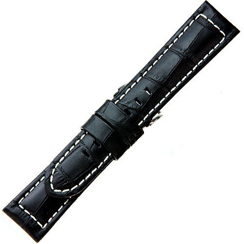 XMK888aw 復刻版オメガスタイル【牛革型押し - 竹符柄・肉厚・白ステッチ】 - 色:黒・白糸ステッチ - サイズ:18-16mm,20-18mm