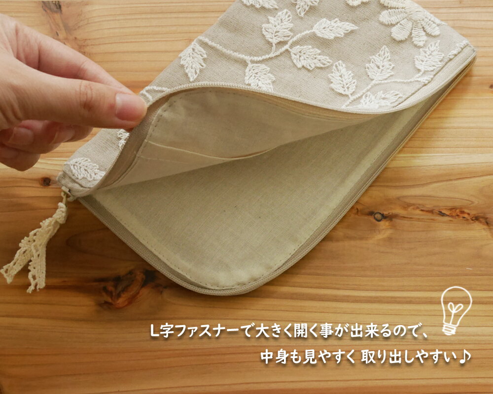 ai A4 サイドバッグ コットン刺繍が、ナチュラルおしゃれ ポスト投函で送料無料 犬のお散歩等 スマホと財布が入る[cl25] レッスン用 おしゃれ 可愛い エレガント リネン 麻 結婚祝い 贈り物 プレゼント 雑貨 レース 生地 軽い 洗える タブレット 母の日