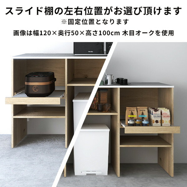 キッチンカウンター レンジ台 レンジボード ゴミ箱収納 スライド棚 電子レンジ台 作業台 キッチン収納 レンジラック キッチンボード キッチンラック 炊飯器 ゴミ箱 収納 食器棚 ダストボックス カウンター 可動棚 リビング ダイニング オフィス ホテル おしゃれ 北欧 ●
