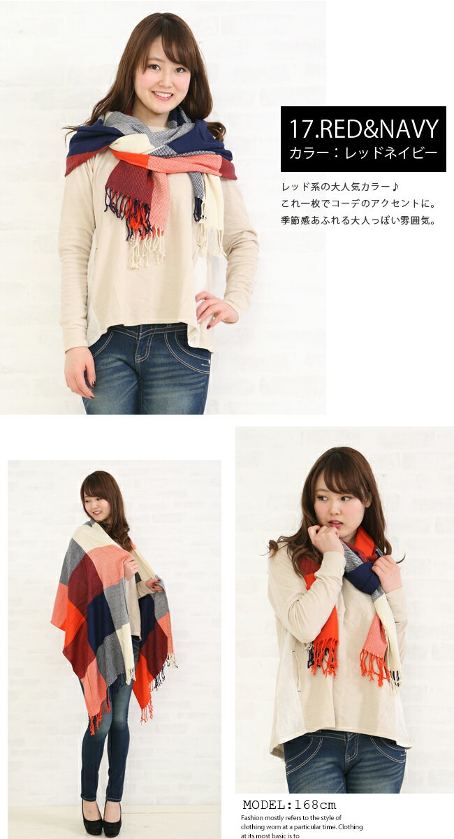 ストール チェック 大判 フリンジ ブロックチェック 大判ストール