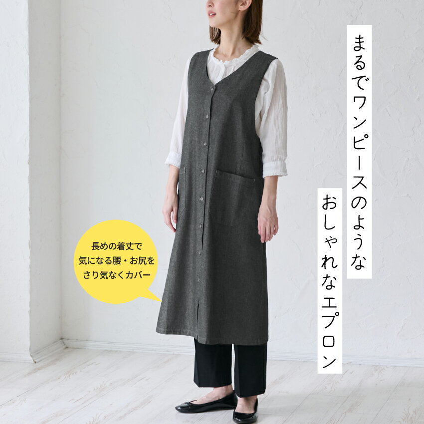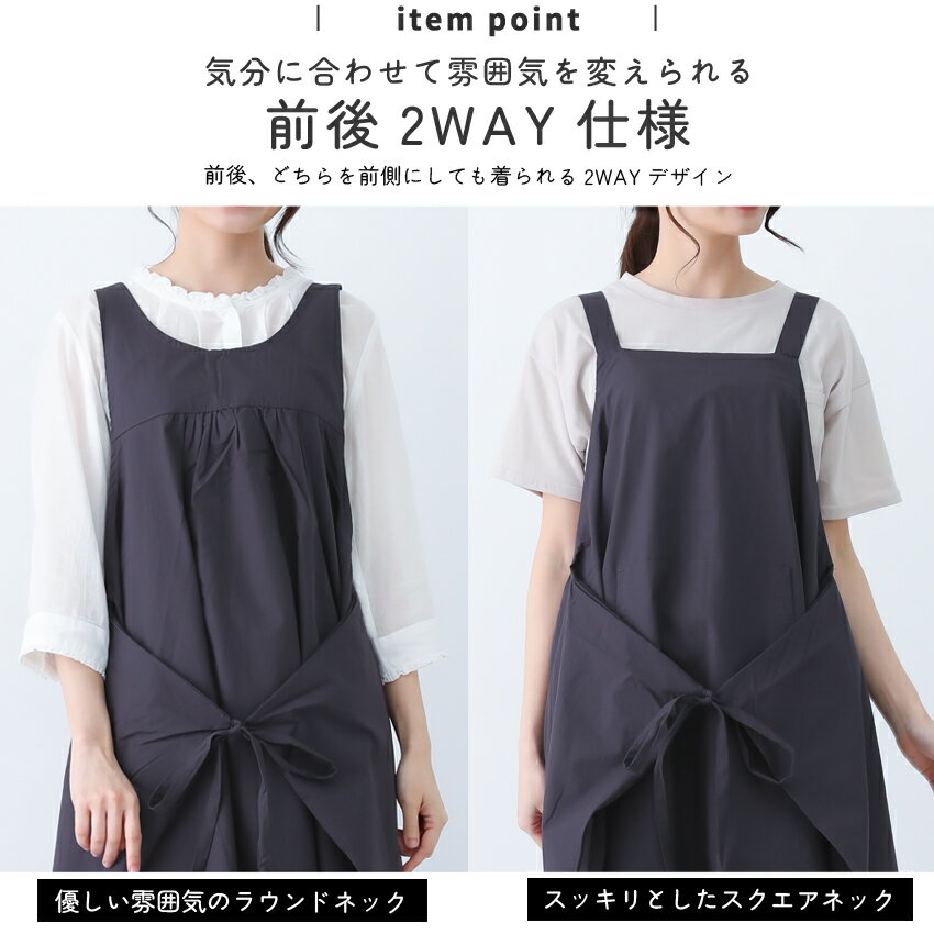 前後2WAYエプロン お尻が隠れる エプロン ワンピースエプロン ワンピース かわいい おしゃれ 保育士 無地 エプロン カフェエプロン ギフト サロン レディース 体型カバー カバーエプロン ロング