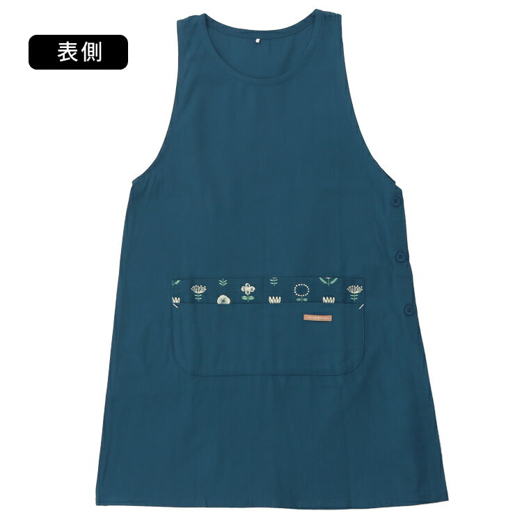 M〜3Lサイズ ワンポイント花柄エプロン ワンピース エプロン ゆったり 綿 コットン シンプル ロング ワンピースエプロン 脇ボタン 保育士 おしゃれ かわいい 母の日 花柄 花 フラワー ギフト プレゼント お尻が隠れる M L LL 2L 3L 大きいサイズ