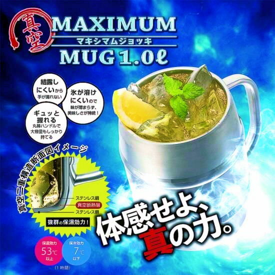 真空二重マキシマムジョッキ1L ステンレス製二重ステンレスの間を真空にする事で高い保冷力を実現ビアジョッキ ビールジョッキ ビアマグ【本州限定送料無料】※九州・四国・北海道へは下記別送料が必要です