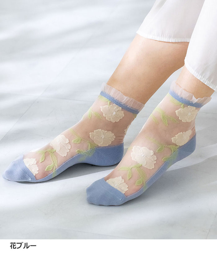 \夏新作10%OFFクーポン/靴下 レディース 華やかシアーソックス 2026夏 belluna ベルーナ ラヴィエンヌ 23〜25cm
