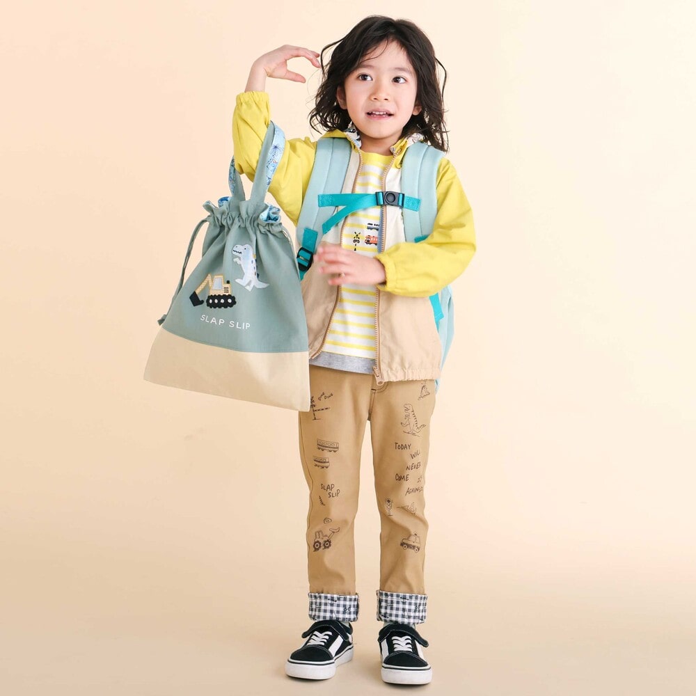 SLAP SLIP 恐竜はたらくくるまウサギフリルリボン総柄お着替えバッグ 子供服 子ども服 女の子 キッズ ギフト ブランド プレゼント 手提げ 新学期 新生活 バッグ ポケット 保育園 通園 通学 春服 キッズ服 保育園 幼稚園 小学生 お出かけ