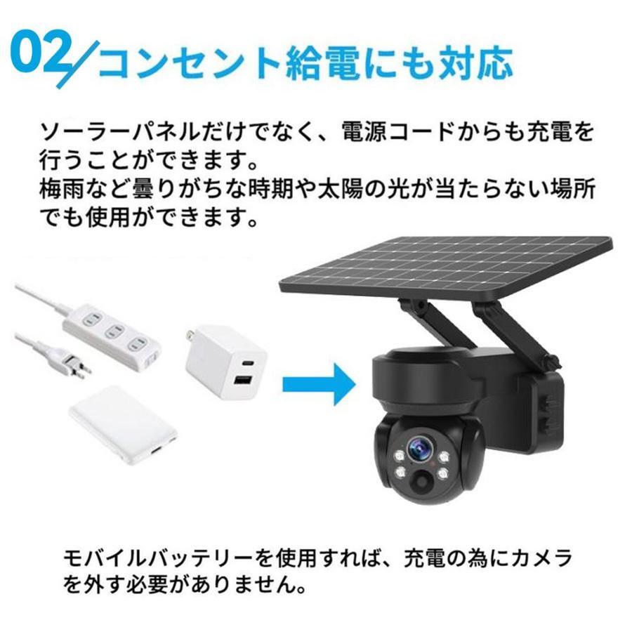 屋外用 防犯カメラ 屋外 ソーラー 防犯カメラ 500万画素 ワイヤレス ネットワークカメラ 監視カメラ 赤外線LED 工事不要 パンチルト 体検知 wifi ワイヤレス 音声通話 配線不要 録画 高画質 夜間カラー 遠隔監視 防水 家庭用