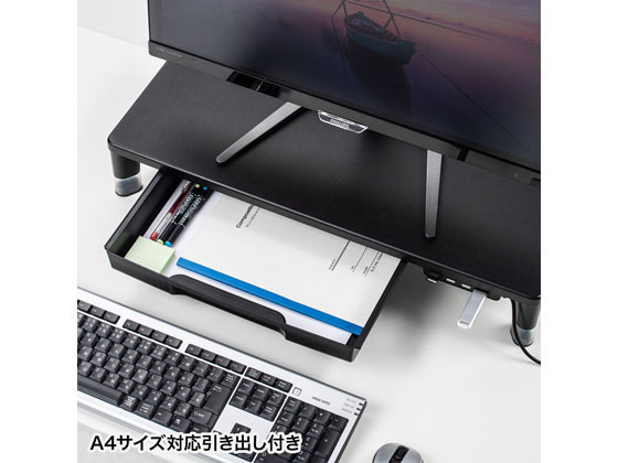 【レビュー投稿で100円OFFクーポン】【メーカー直送】サンワサプライ USBハブ・引出付机上ラックW590 ブラック MR-LC805BK【代引不可】【お客様組立】机上台 モニター台 デスク周辺 オフィスデスク 事務机 オフィス家具