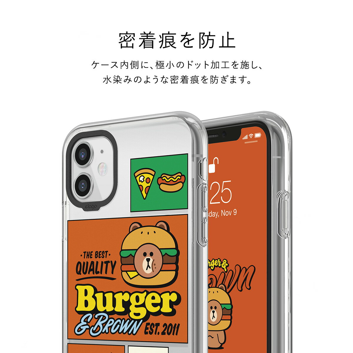 iPhone12Pro Max ケース ラインフレンズ 公式 ライセンス 商品 クリア スマホケース カバー 可愛い LINEフレンズ 携帯ケース かわいい 耐衝撃 クリアケース [ Apple iPhone12 Pro Max アイフォン12 Pro Max アイフォン12プロマックス 対応 ] elago LINE FRIENDS BURGER TIME