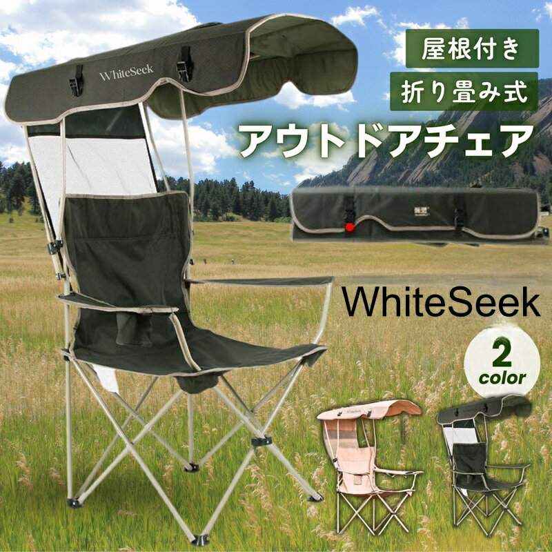 WhiteSeek アウトドアチェア 庇付き 屋根付きアウトドア椅子 サンシェード付きチェア 屋根付き椅子 アウトドア シェード付きチェア 屋根付きチェア 折りたたみ椅子 屋根 折りたたみ 折り畳み キャンプチェア 屋根付き イス 椅子 日焼け対策 キャンプ 組立 簡単 丈夫 おしゃれ