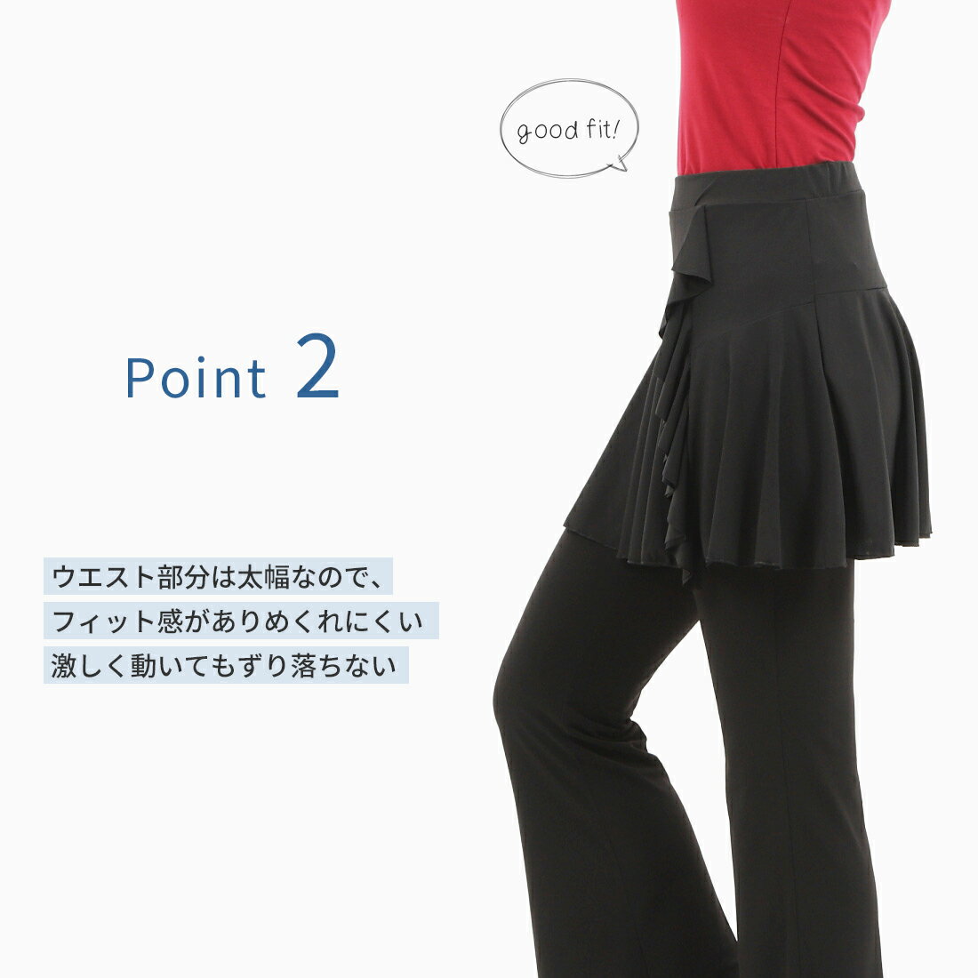 ダンス・ヨガ スカート付パンツ パンツ スカート SET501 オーバースカート 美脚 脚長 美尻 体型カバー ダンスパンツ ジャズダンス ヨガパンツ スタイルアップ 黒 オシャレ フィットネス ストレッチ ボトムス 着痩せ スカート【cb32】