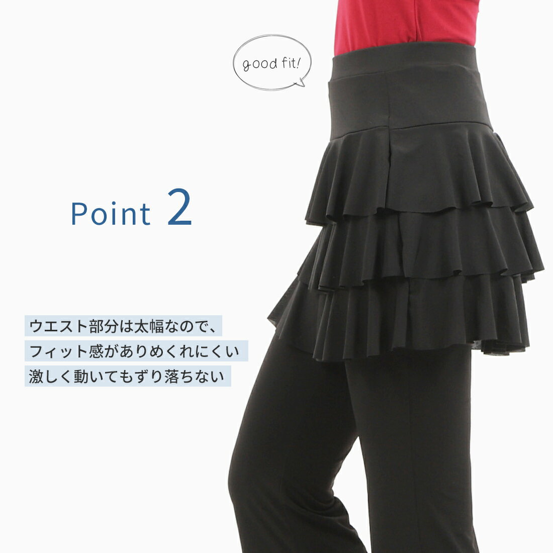 ダンス・ヨガ スカート ZUM(スム) 3段フリルタイプ SK52 美脚 脚長 美尻 体型カバー ダンススカート ダンスパンツ ジャズダンス ヨガスカート スタイルアップ ダンス衣装 黒 オシャレ フィットネス ストレッチ ボトムス 吸汗速乾 着痩せ セット パンツ セットアップ【cp32】