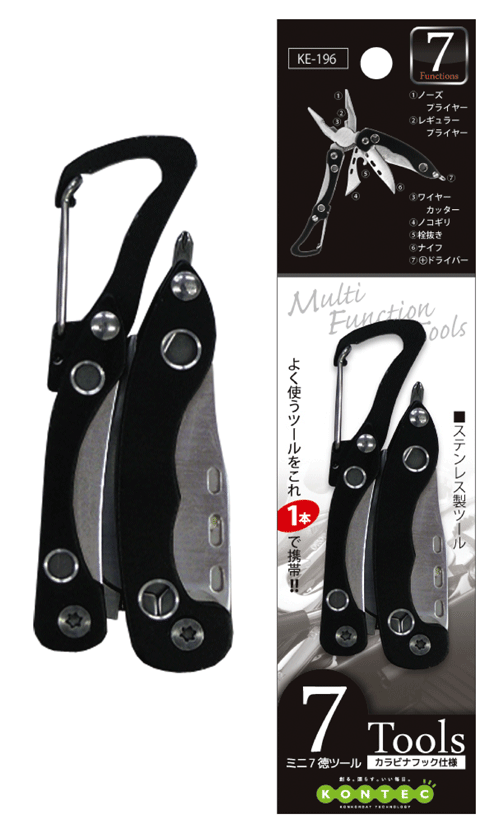 ミニ7徳ツール KE-196【多機能携帯ツール】キーホルダー付きナイフ プラスドライバー 工具 ノーズプライヤー ワイヤーカッター 栓抜き