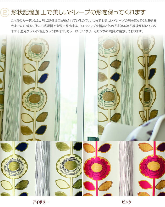 遮光カーテン[100cm カーテン 遮光 ×135cm]1枚 ドレープ シンプル 可愛い 日本製 SUN 北欧 ウォッシャブル 形状記憶加工 FLOWER 花柄 サンフラワー モダン