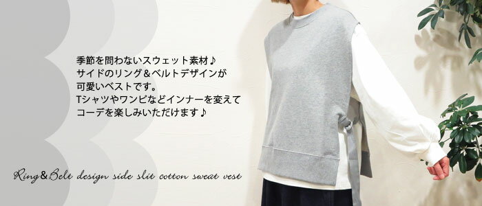 クーポン利用で最大【10%オフ】【再入荷&新色入荷】レディース ベスト 裏毛 スウェット コットン100% サイドスリット レイヤードスタイル 重ね着 トップス ナチュラル トレンド ベスト 楽ちん お出掛け シーズンレス アイボリー グレー ブラウン ブラック 1522-5321