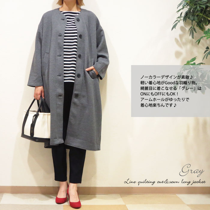 クーポン利用で最大【10%オフ】秋ウター コート レディース ラインキルト キルティング ロング丈 ノーカラー コート コーディガン カーディガン 軽めアウター ジャケット 羽織り物 カジュアル 軽量 ブラック モカ アイボリー グレー ピンクベージュ 7122-7130 秋 冬