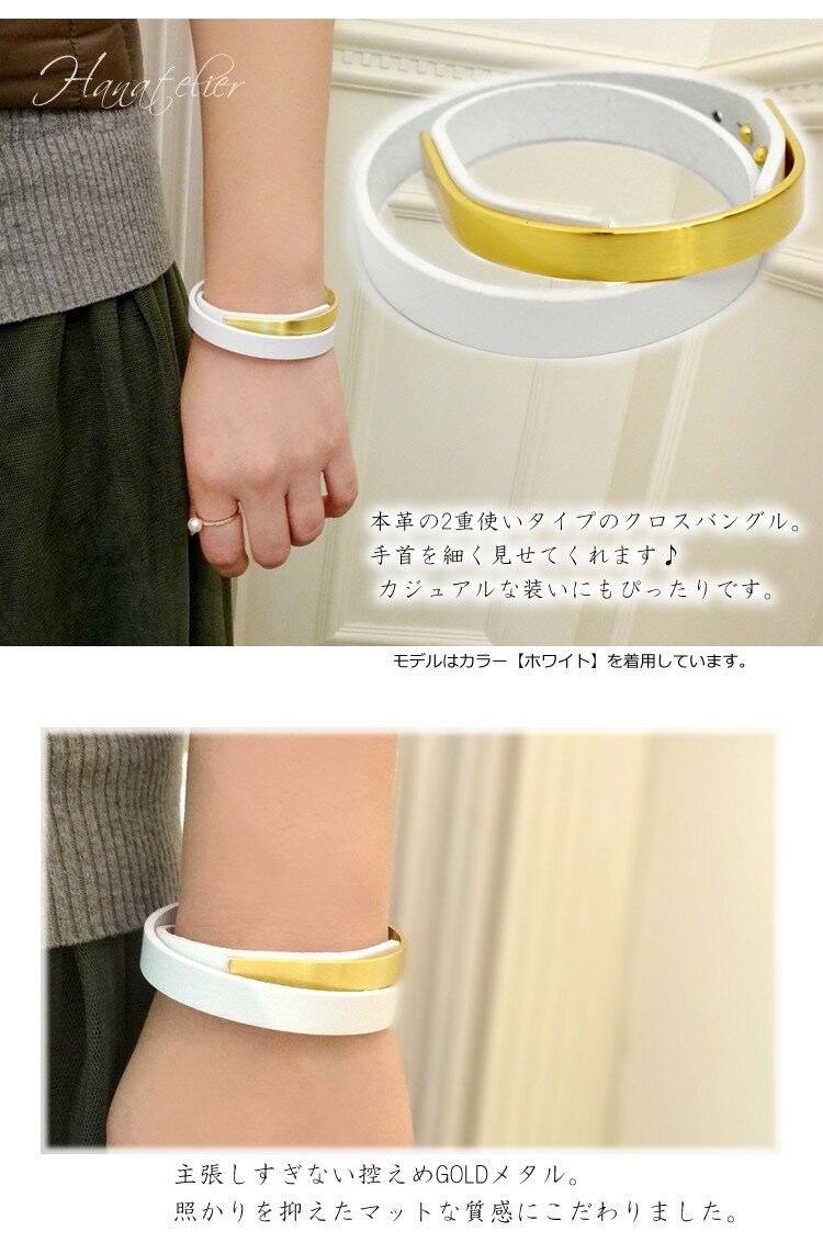 選べる4色★イタリアンレザーGoldメタルの本革クロス・バングル【メール便OK】bra034**