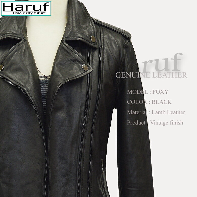 Haruf 本革 ダブルライダースジャケット レディース 革ジャン 皮ジャン ダブルライダース ライダースジャケット レザージャケット ダブル 革ジャケット 黒 ブラック レディースアウター 秋冬 ラムレザージャケット FOXYBK 春