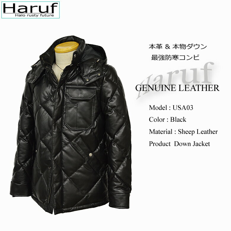 レザーダウンジャケット ダウンジャケット メンズ 本革 暖かい ダウンジャケット レザージャケット 革ジャン ライダースジャケット フード付き ダウン 革 ジャケット ダウンコート ブランド 大きいサイズ 秋冬 黒 ブラック USA03