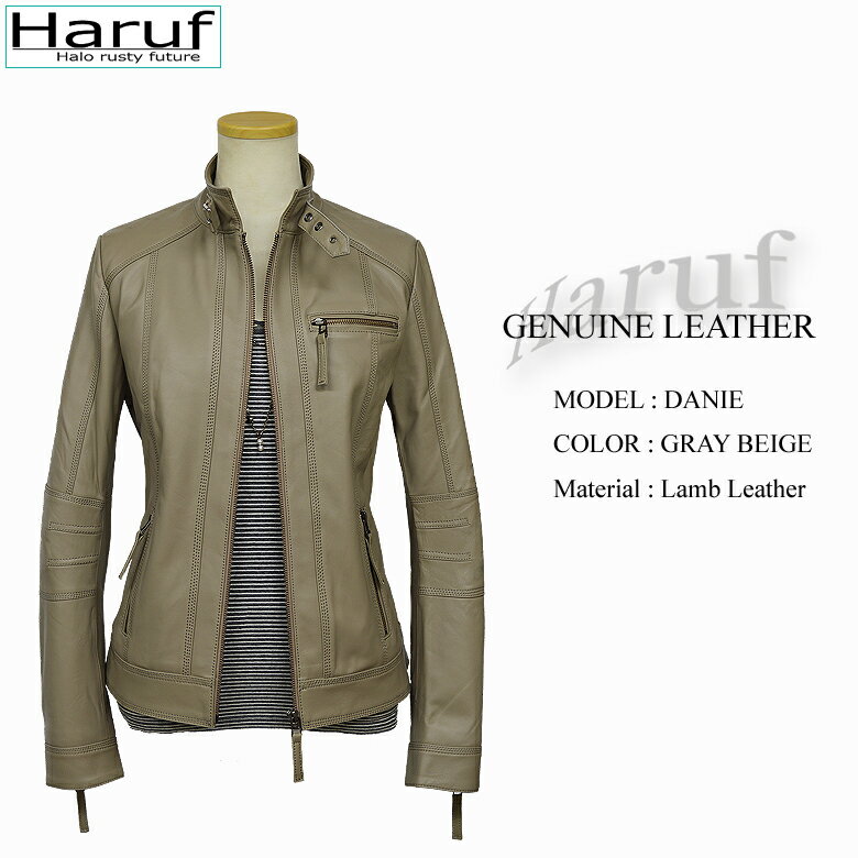 ライダースジャケット レザージャケット 革ジャン レディース 本革 レザー ライダース 革 ジャケット ラムレザー シングル スタンドカラー ブルゾン シンプル おしゃれ 軽い レディースアウター 秋 冬 グレー ベージュ DANIEGBE 春