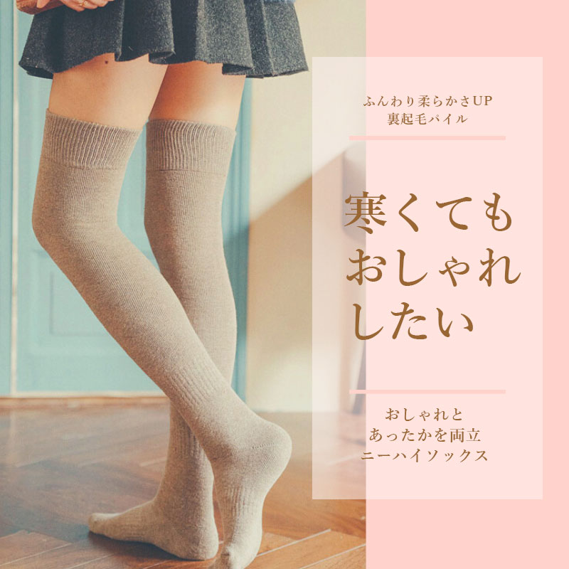 ニーハイソックス レディース 暖かい ひざ上 靴下 あったか 裏起毛 厚手パイル 全10色 綿混 秋冬 防寒 冷え対策 カラバリ 美脚効果 ロングソックス 黒 グレー 黄色 マスタード オレンジ ベージュ ブラウン【送料無料】