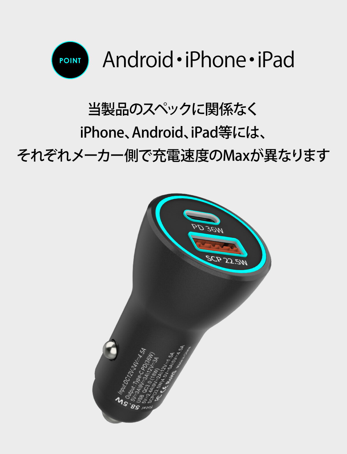 車用 充電器 高速充電 【合計58.5W】シガーソケット PD PPS対応 【 2ポート Type-C + USB-A 】iPhone iPad Pro iPhone16 iPhone15 アンドロイドスマホ Pixel 9 8 7 Galaxy S24 S23 S22 タブレット ノートPC カーチャージャー【ネコポス 全国送料無料】 シガーアダプター