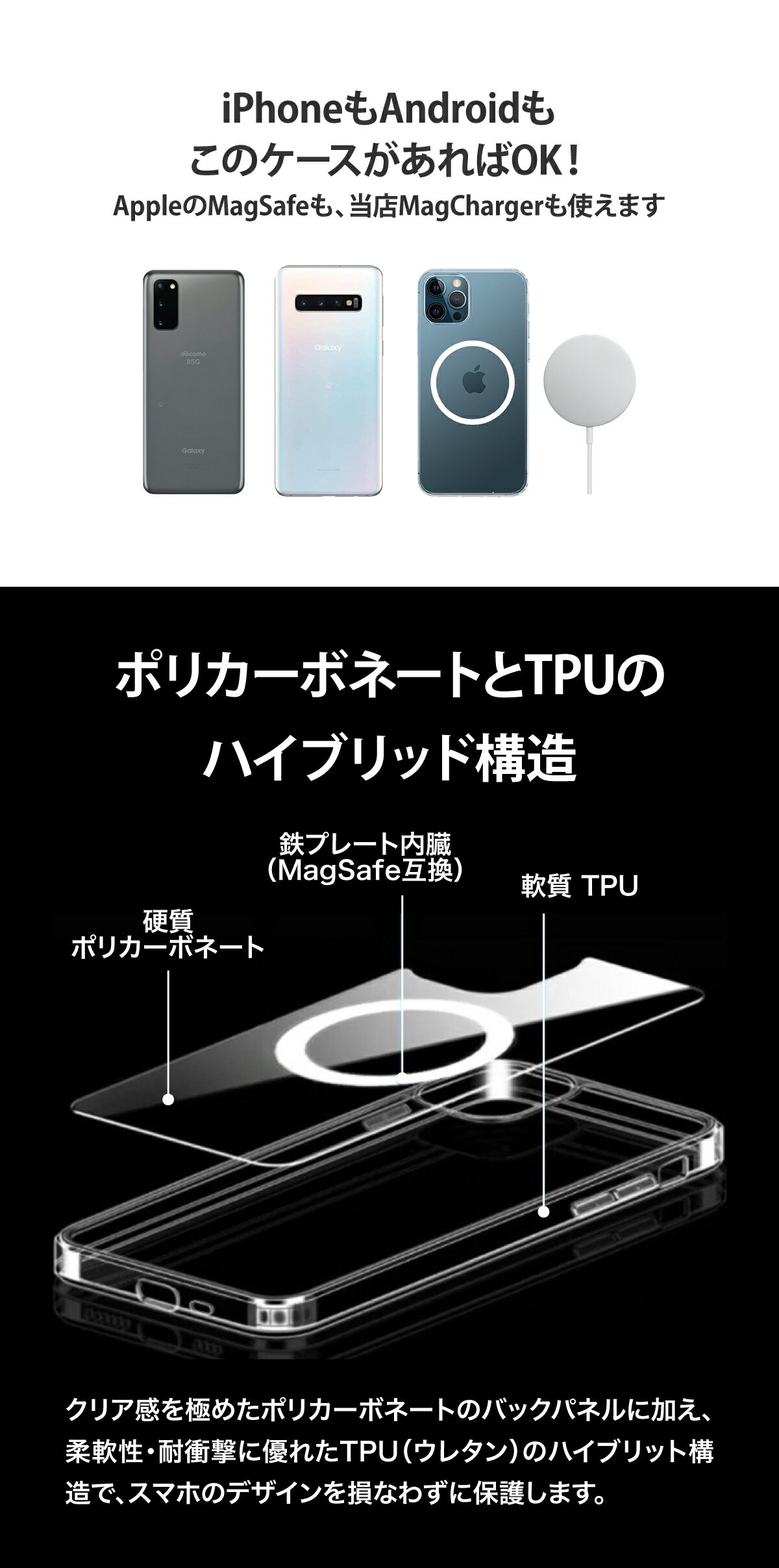 【Android Galaxy 用】Apple MagSafe対応 スマホケース【Androidケース 】Galaxy S20+ S20 Ultra 磁石でくっついて 充電 マグネット内蔵 ケース マグネット MagCase マグケース 磁力 磁石でピタッと 磁力 マグセーフ 対応 透明 クリア 送料無料