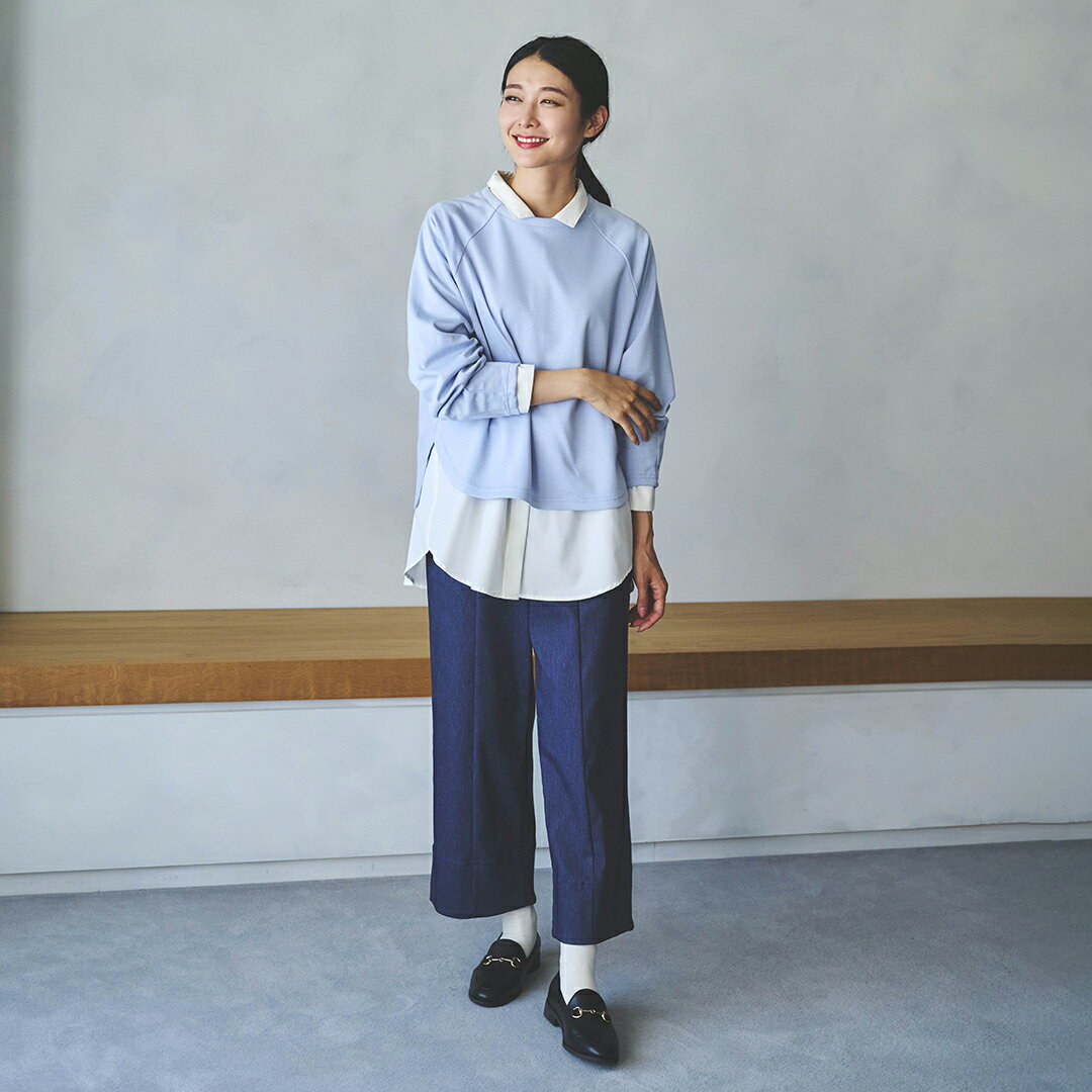 【KEYUCA公式店】ケユカ ダンボールコクーンスリーブトップス [レディース トップス ダンボール素材 ストレッチ 重ね着 着回し シャツテール ロングシーズン 冬 春 秋 オフィスカジュアル きれいめ 洗える ウォッシャブル 通販]